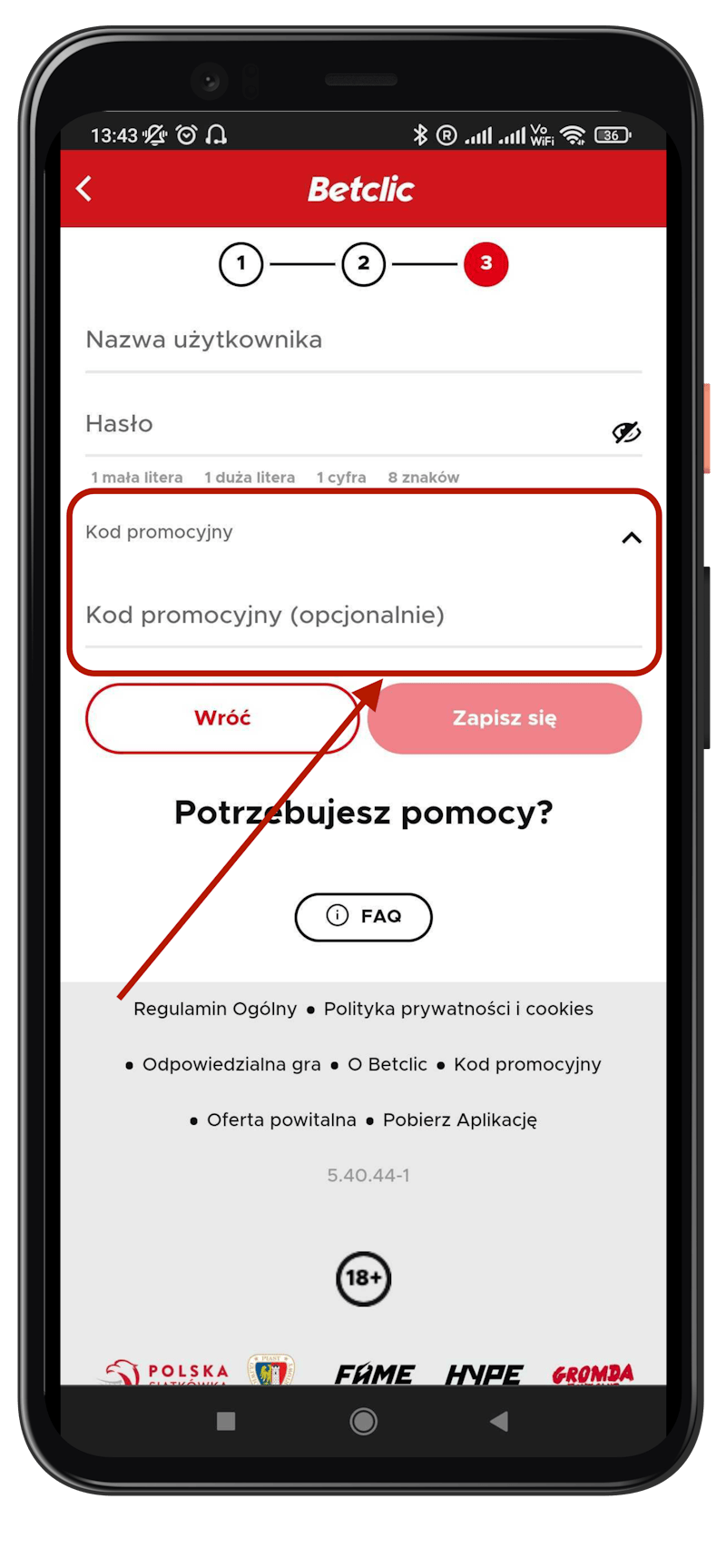 ✅ Okienka - w którym wpiszemy kod promocyjny