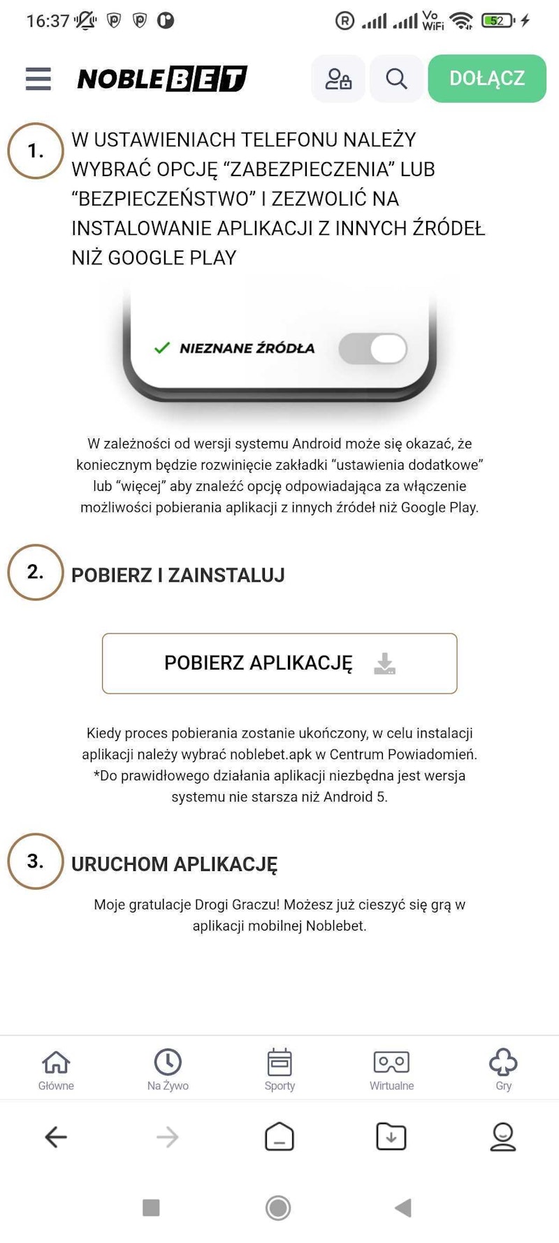Noblebet freebet 20 PLN w aplikacji