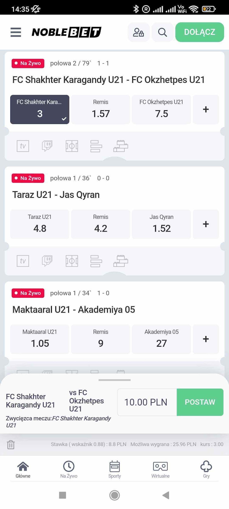 Za postawienie pierwszego zakładu w aplikacji Noblebet daje freebet w wysokości 20 PLN.