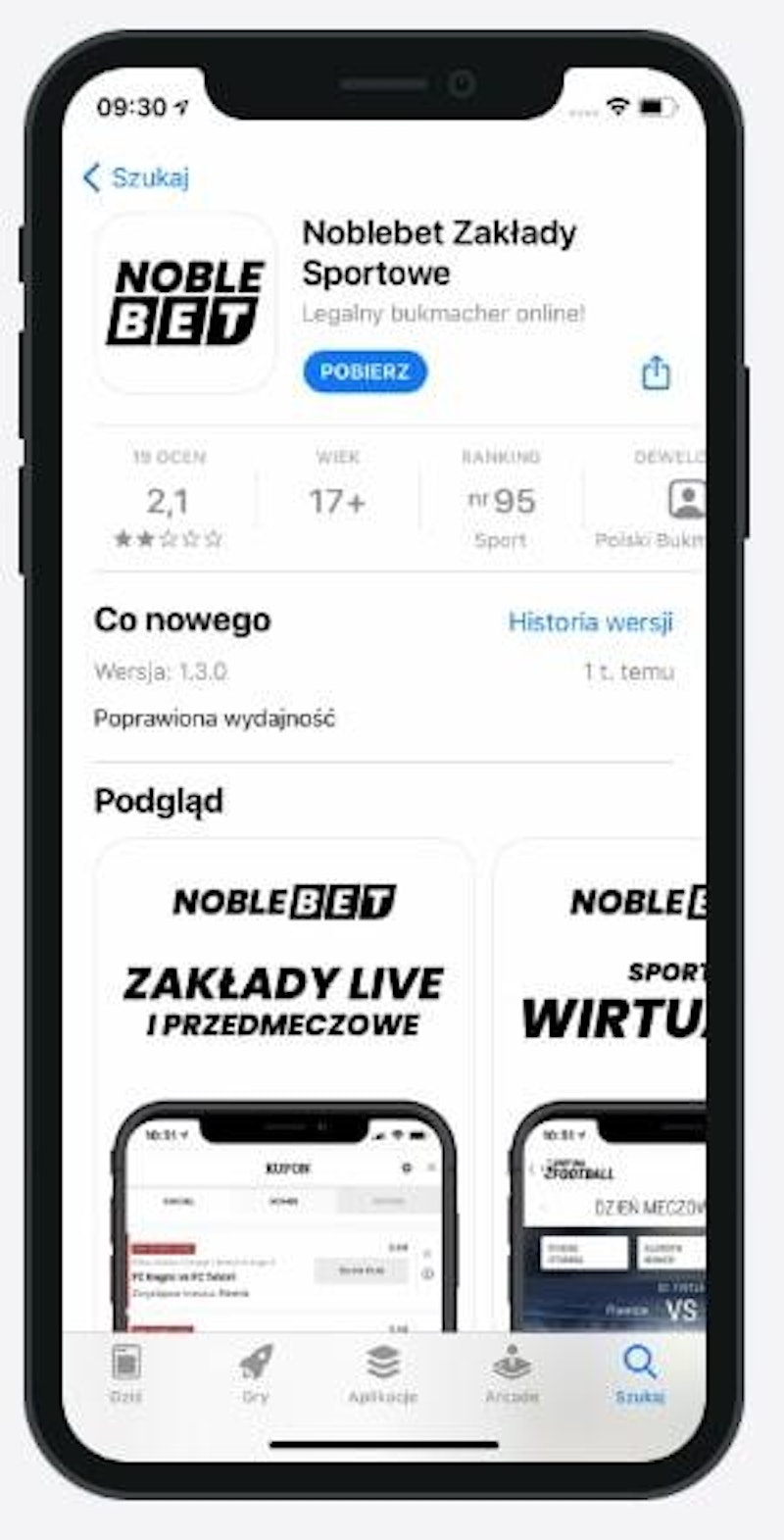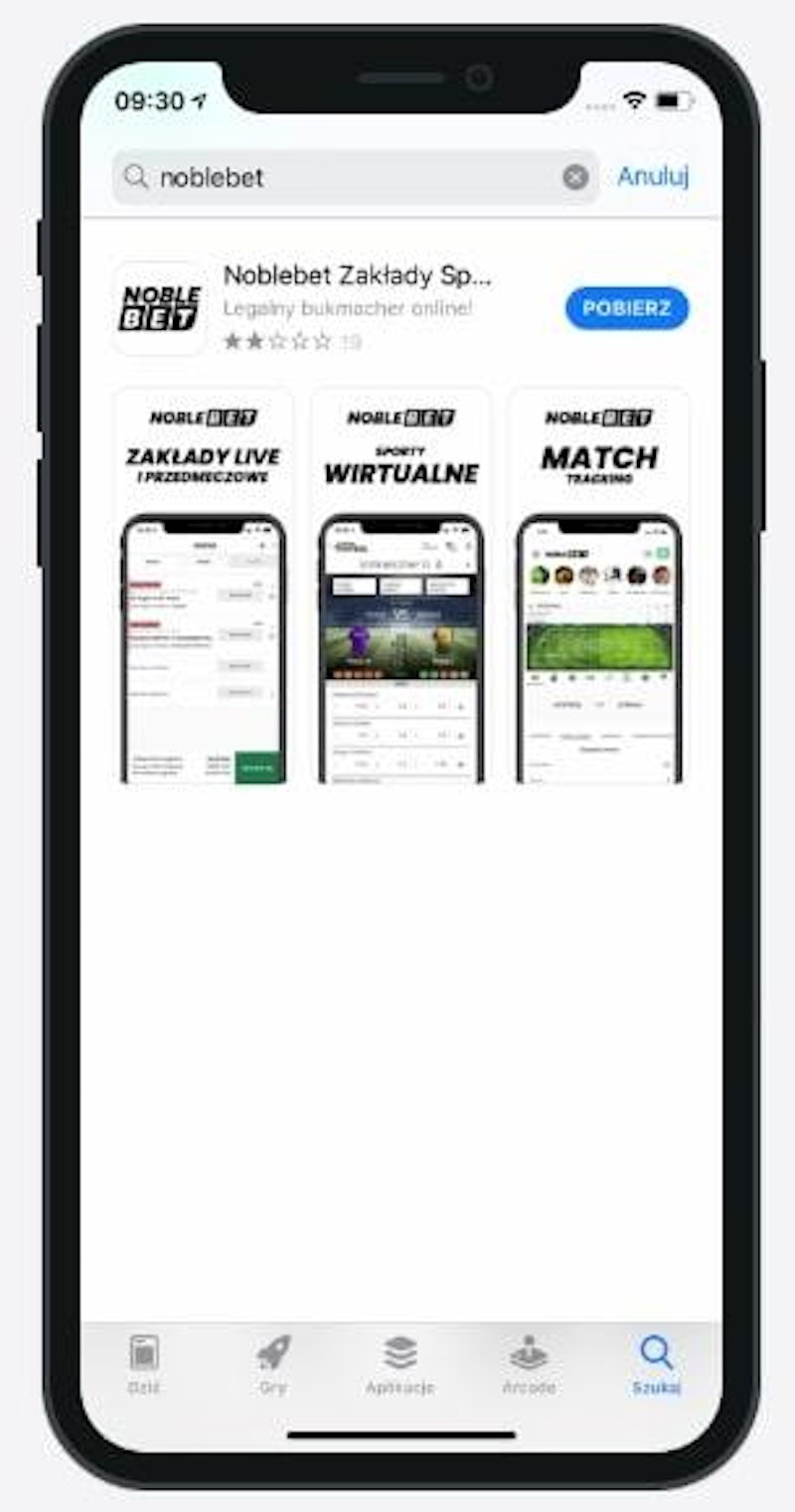 W App Store skorzystaj z wyszukiwarki, wpisując Noblebet.