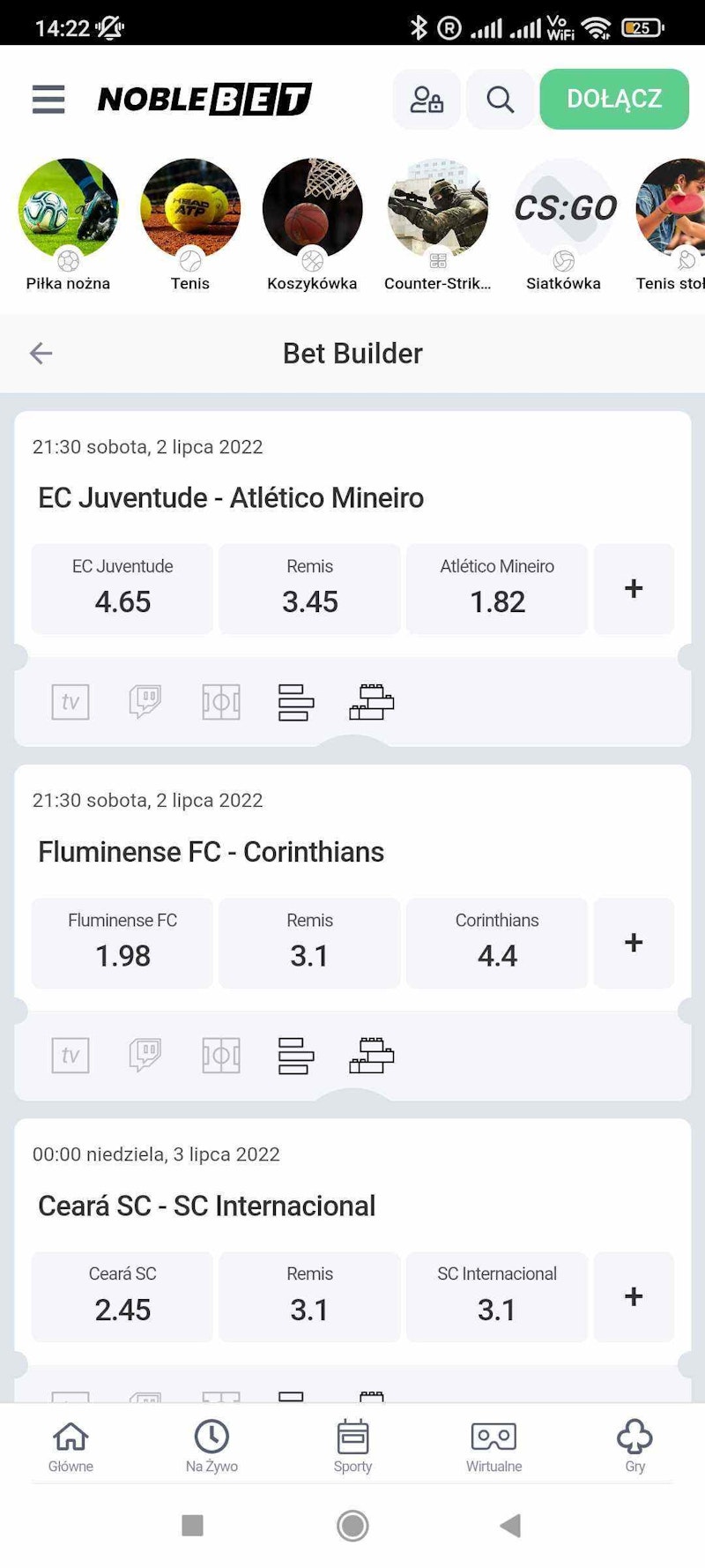 Wirtualne sporty – zakłady na wirtualną piłkę nożną, tenis i wyścigi 24/7 w aplikacji od Noblebet