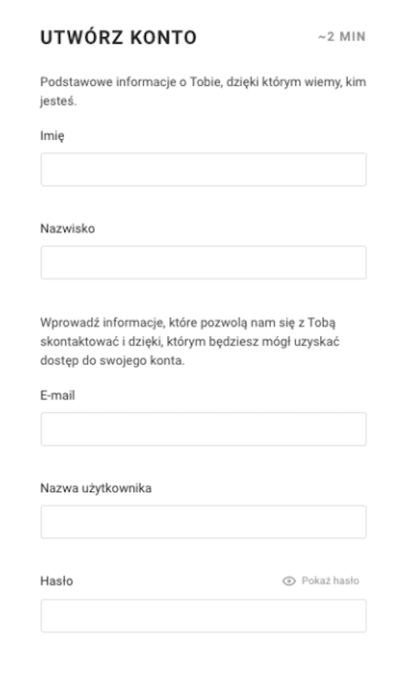 ✅ Szybka rejestracja konta (bez dowodu)