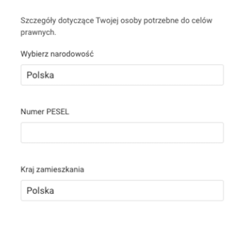 Na koncie musimy uzupełnić takie dane jak:
