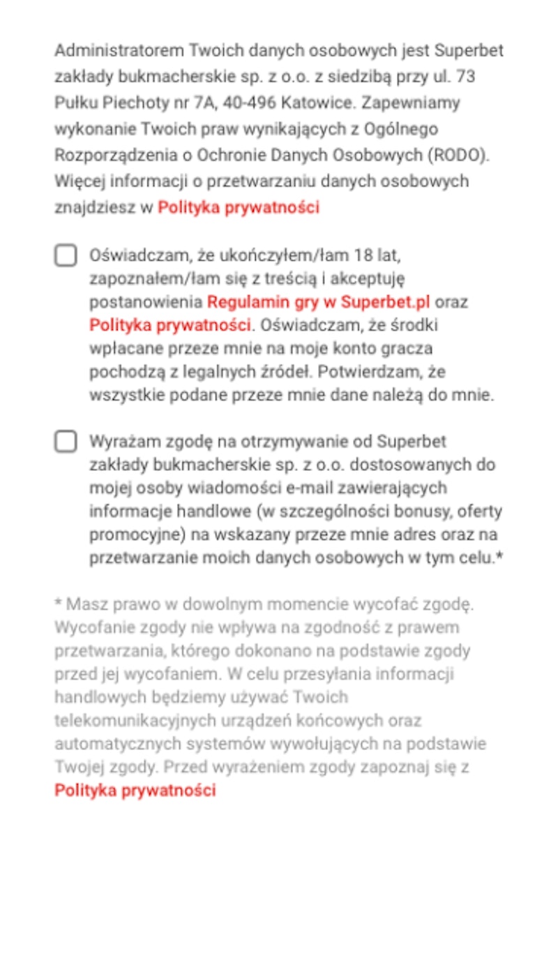 Dane do weryfikacji można załadować poprzez konto w Superbet.